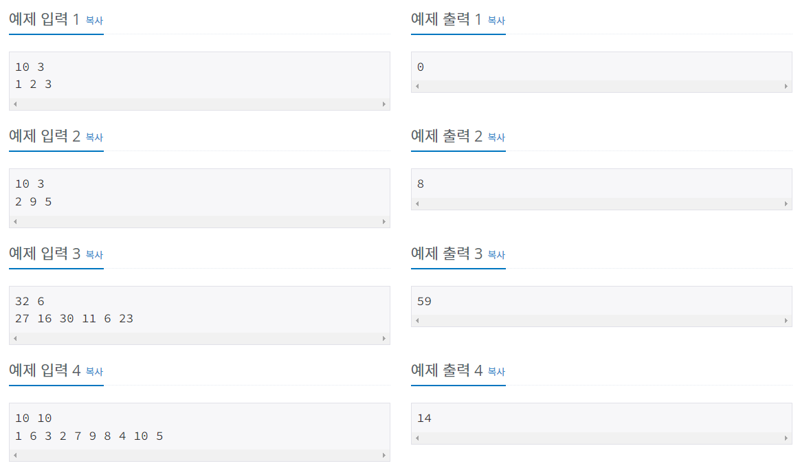문제 인하은행에는 ATM이 1대밖에 없다. 지금 이 ATM앞에 N명의 사람들이 줄을 서있다. 사람은 1번부터 N번까지 번호가 매겨져 있으며, i번 사람이 돈을 인출하는데 걸리는 시간은 Pi분이다. 사람들이 줄을 서는 순서에 따라서, 돈을 인출하는데 필요한 시간의 합이 달라지게 된다. 예를 들어, 총 5명이 있고, P1 = 3, P2 = 1, P3 = 4, P4 = 3, P5 = 2 인 경우를 생각해보자. [1, 2, 3, 4, 5] 순서로 줄을 선다면, 1번 사람은 3분만에 돈을 뽑을 수 있다. 2번 사람은 1번 사람이 돈을 뽑을 때 까지 기다려야 하기 때문에, 3+1 = 4분이 걸리게 된다. 3번 사람은 1번, 2번 사람이 돈을 뽑을 때까지 기다려야 하기 때문에, 총 3+1+4 = 8분이 필요하게 된다..